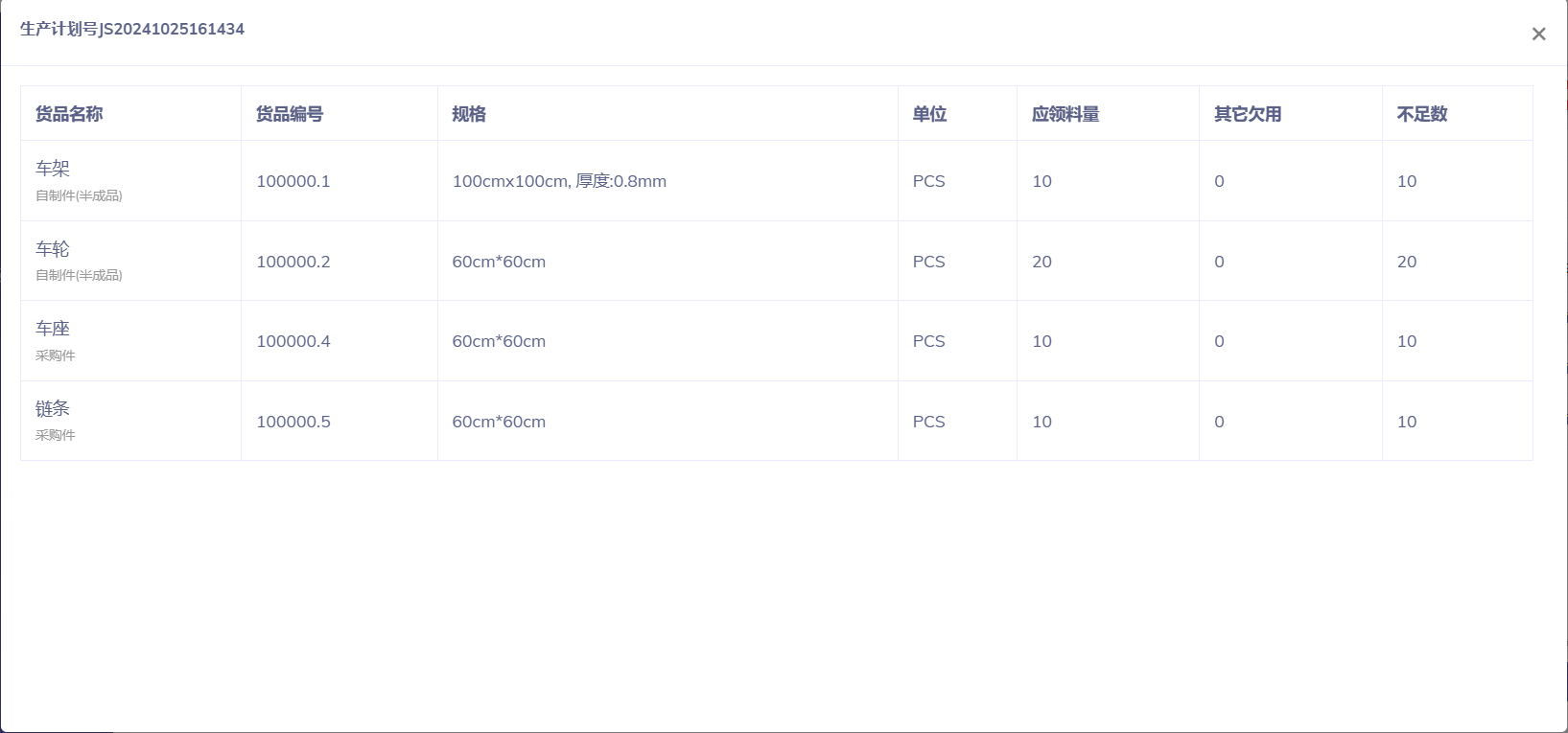 创建生产计划单后系统自动帮我们计算所需物料和采购建议