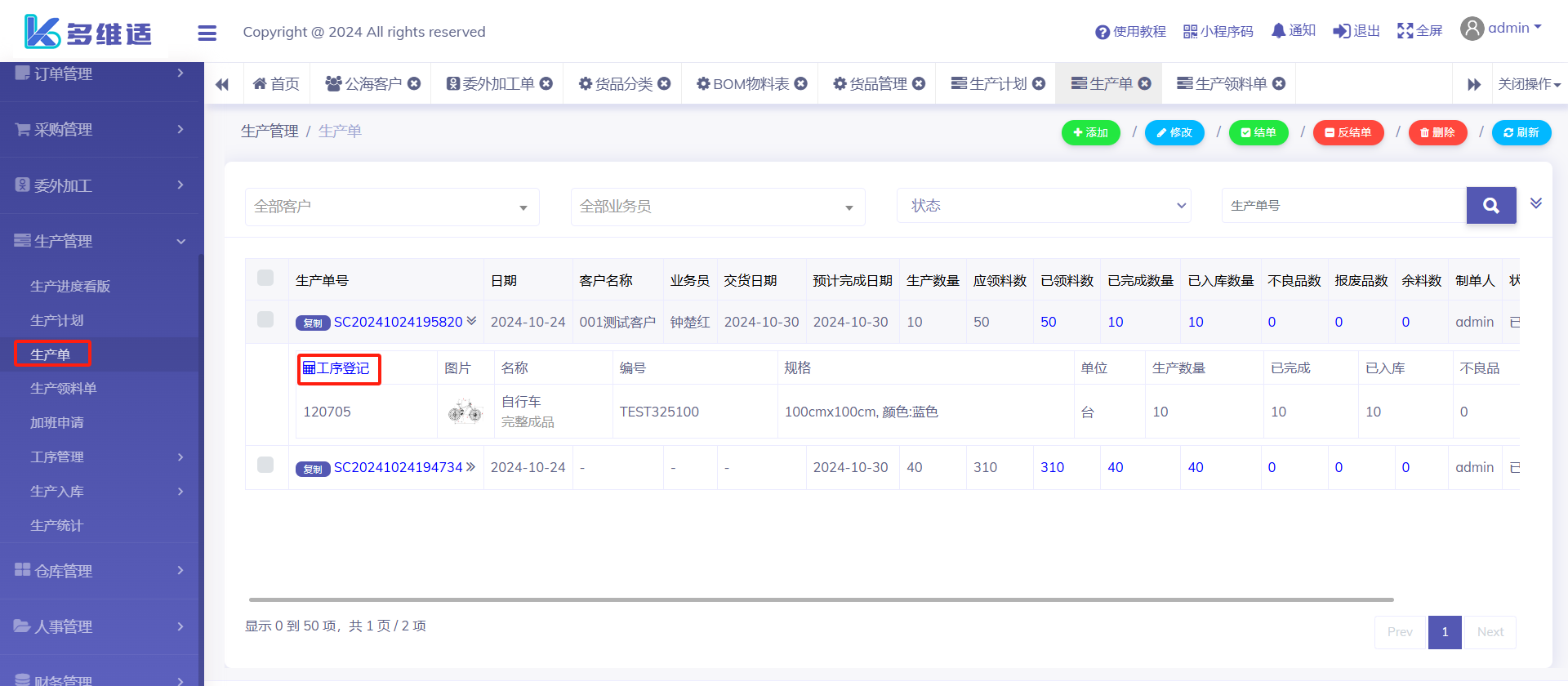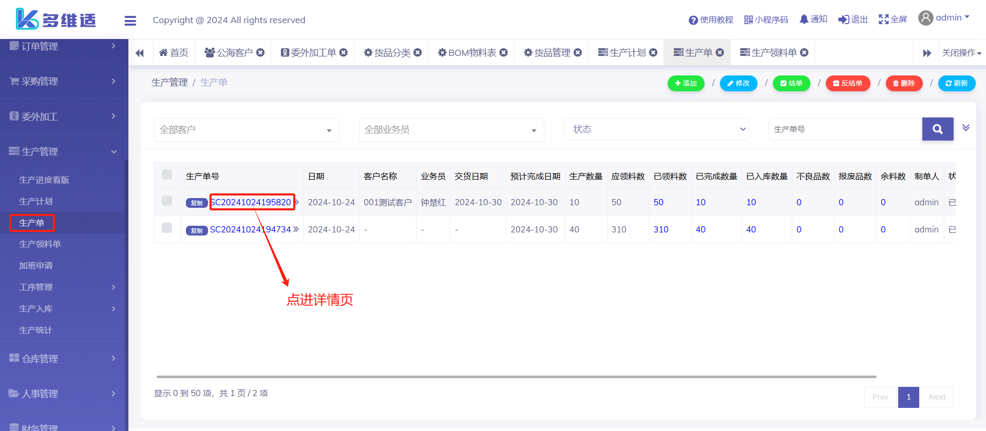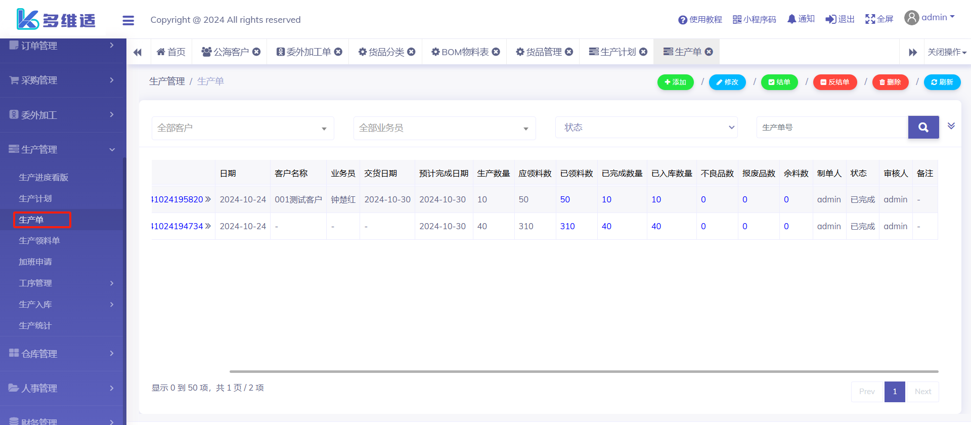当工序审核完成后,系统就会自动把生产单设置完成状态。