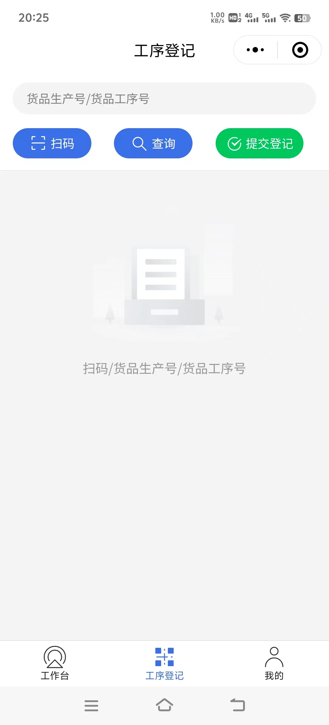 生产工在小程序扫码登记工序,如下图所示: