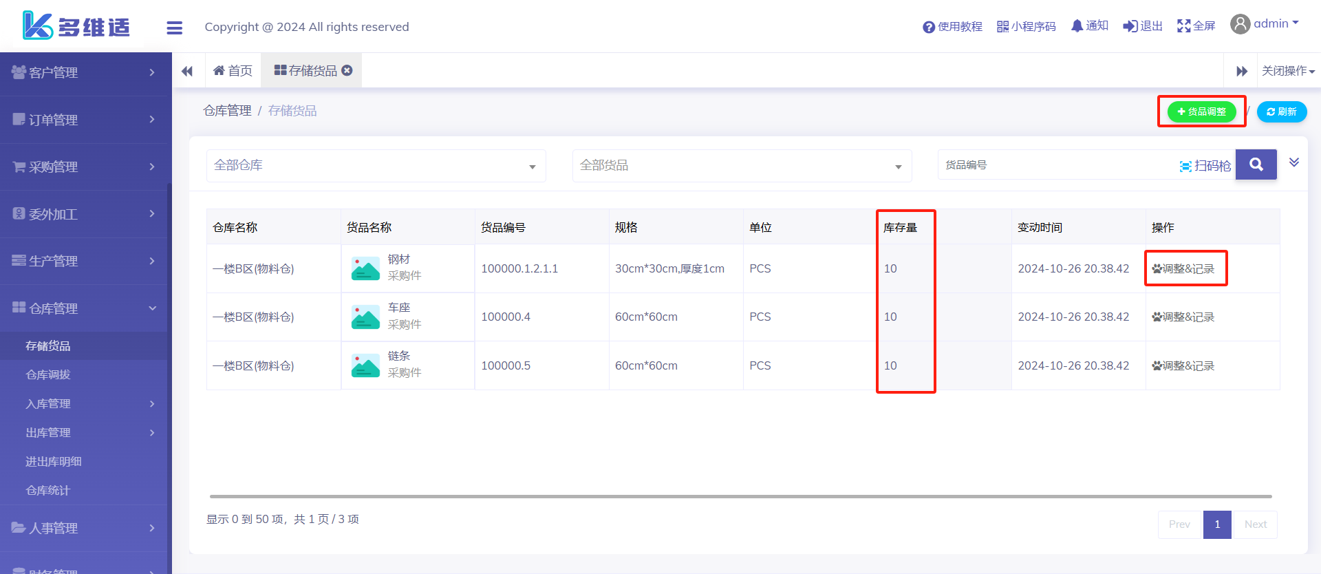 出入库明细-就是记录各种仓库变动记录,所有的出入库在这里都能查询到