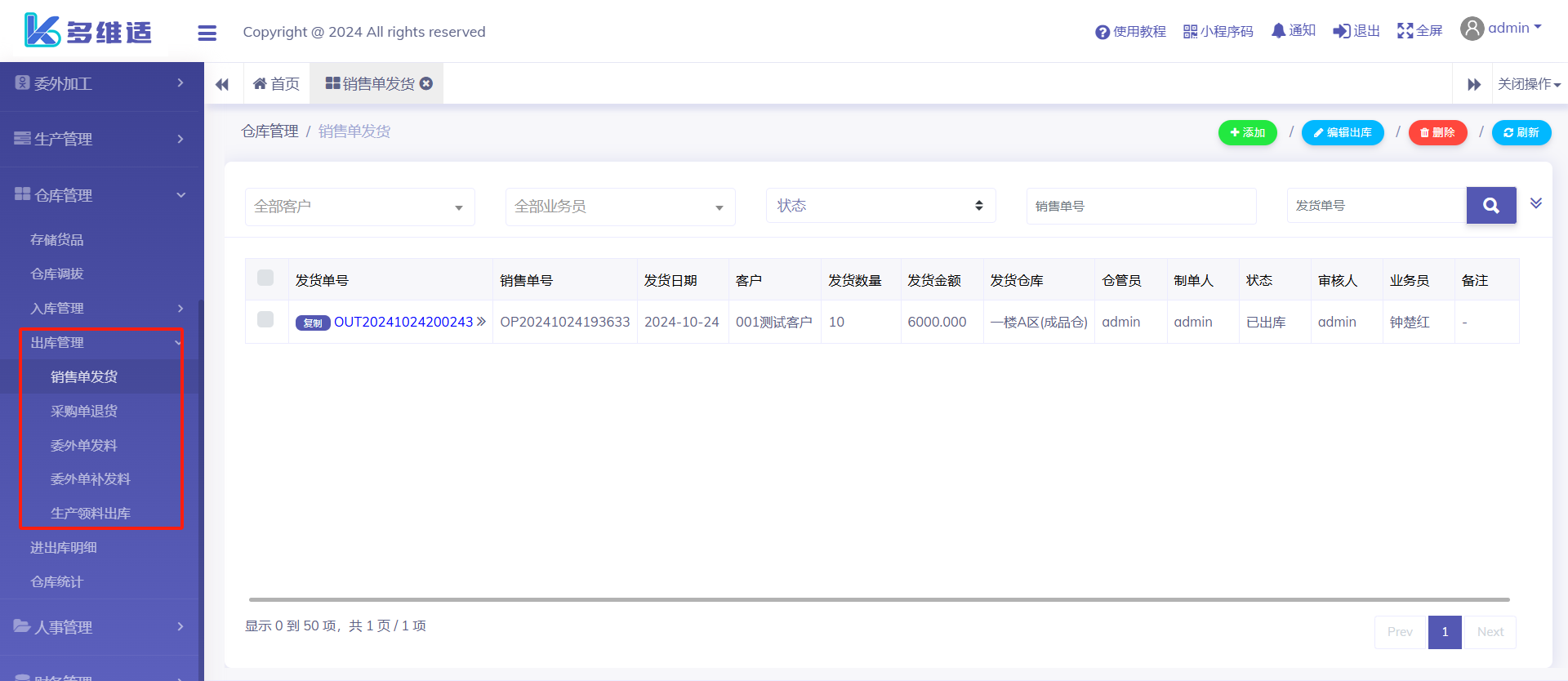 出库管理-通常情况不需要在这里开单处理,这里的出库单是其它业务申请出库时,这里才有信息。如销售发货出库先由管理订单人员开发货单就会同步到这里,出库状态只能在这里操作。当然这里也能直接开出库单,根据企业管理习惯灵活应用。