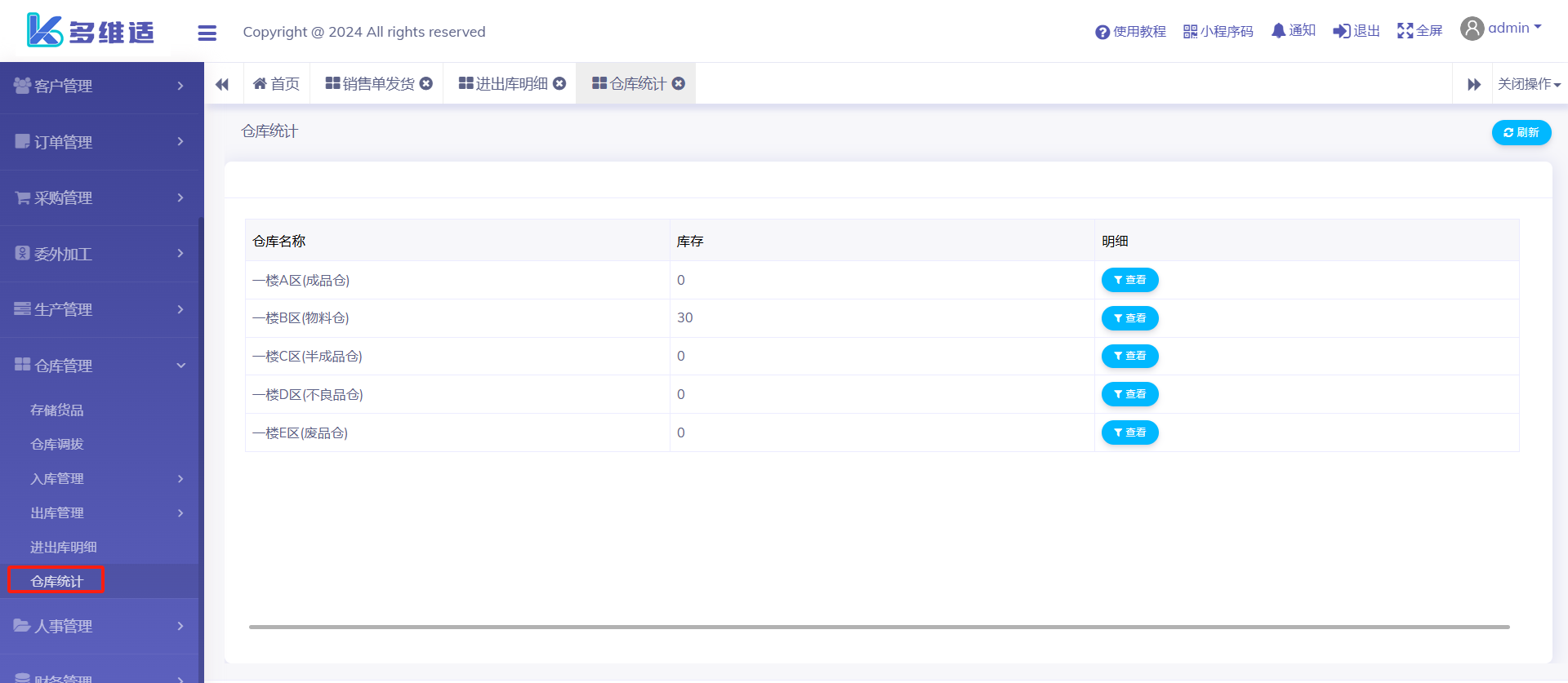 仓库统计-就是统计各个仓库存货情况