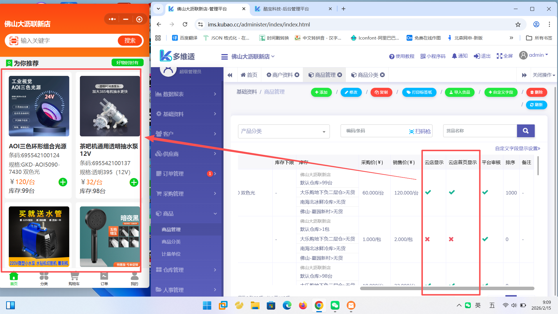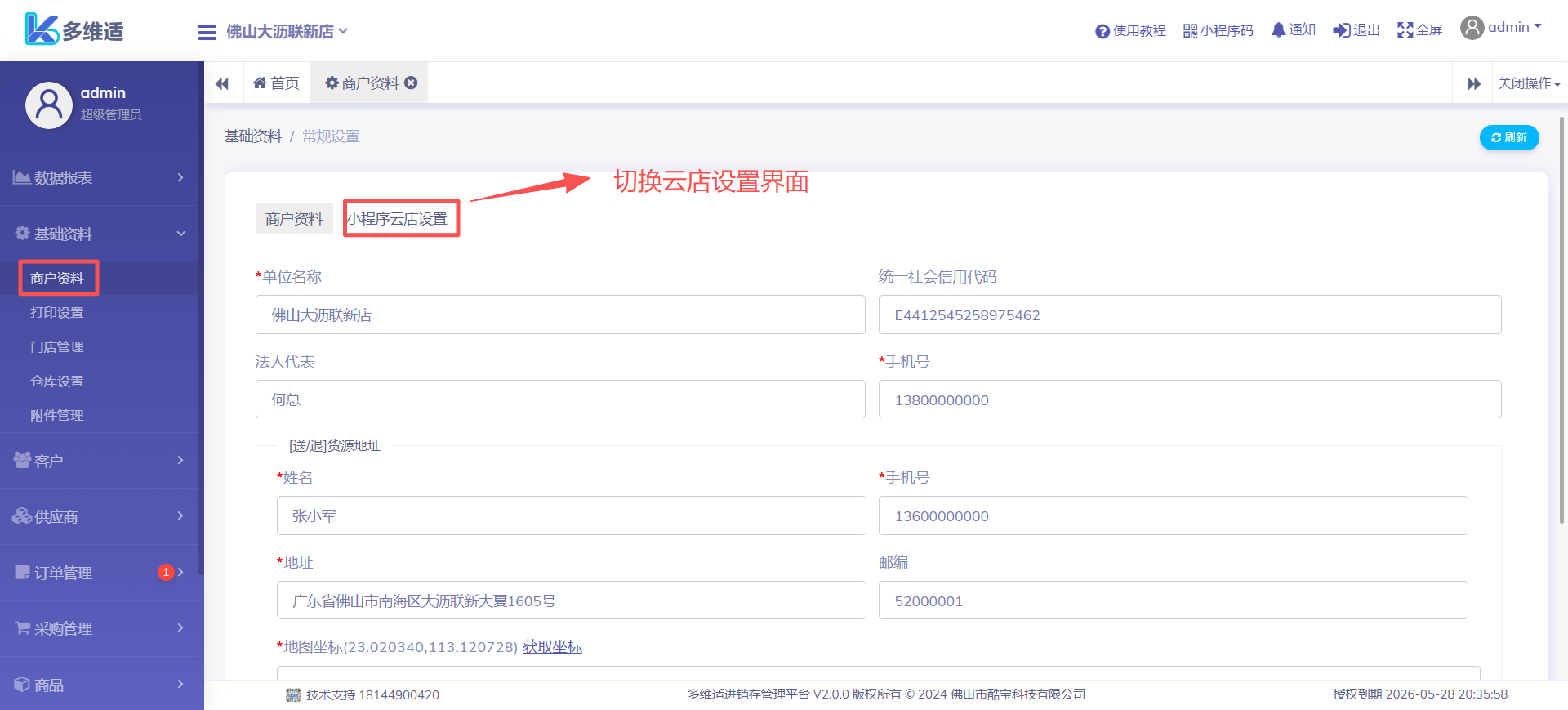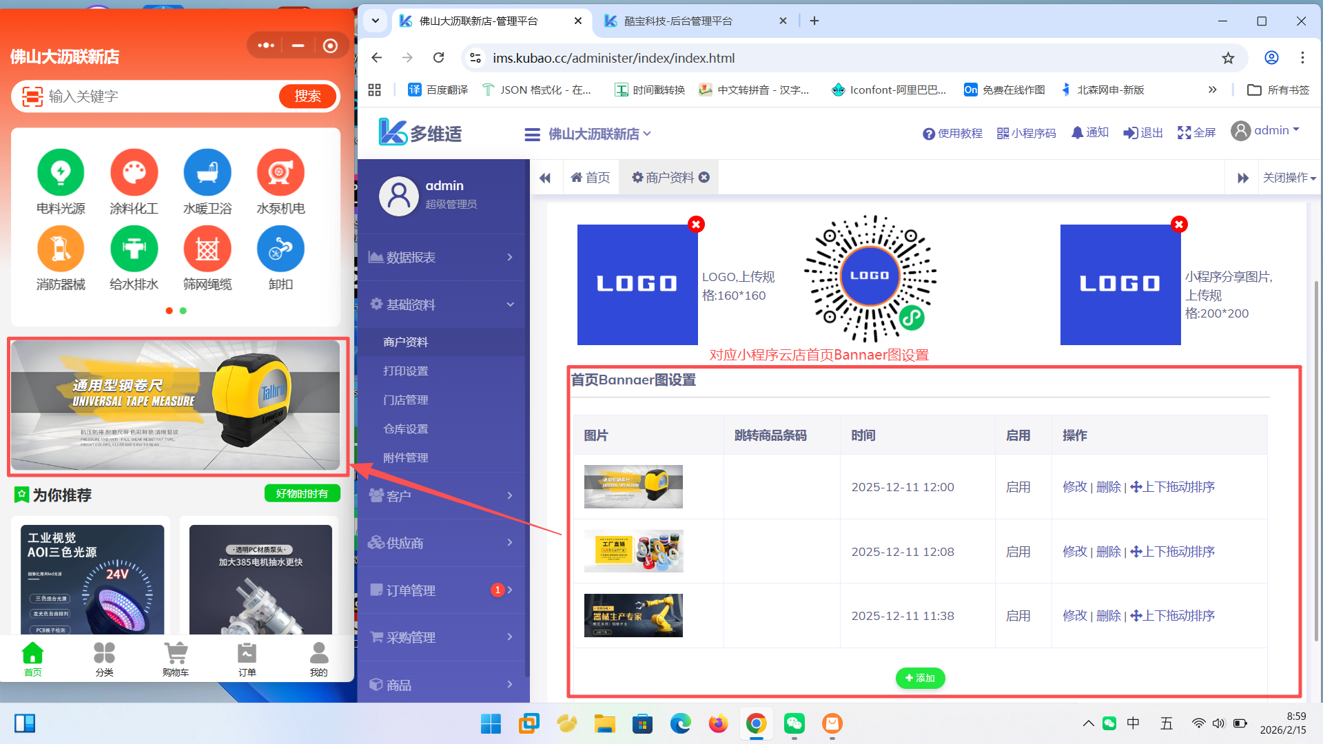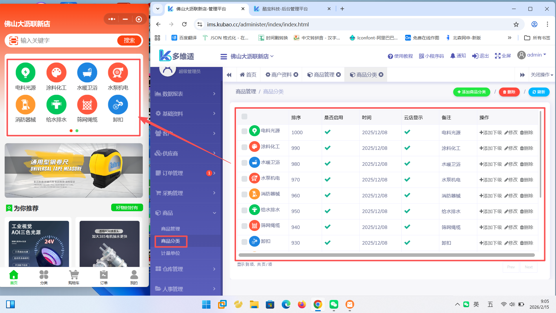 3.设置小程序首页分类导航含(启用状态,是否云店显示)