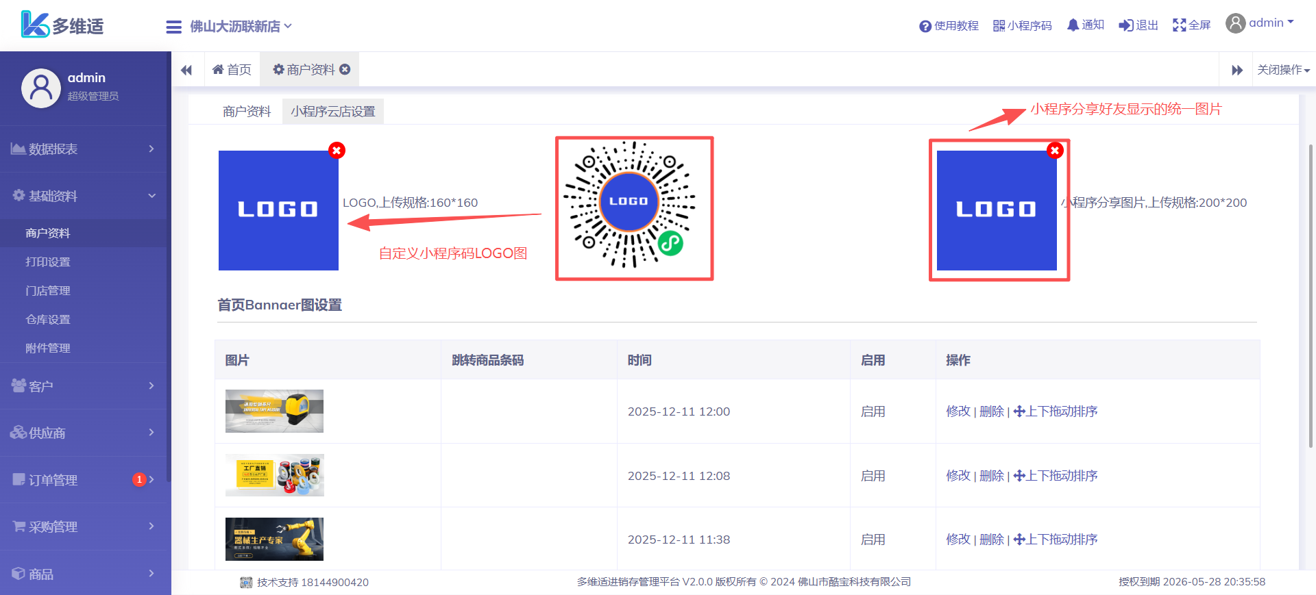 1、自定义小程码的LOGO图并设置小程序分享图片;注意:小程序码是进入你的小程序云店唯一路径,可下载并印刷到企业宣传单