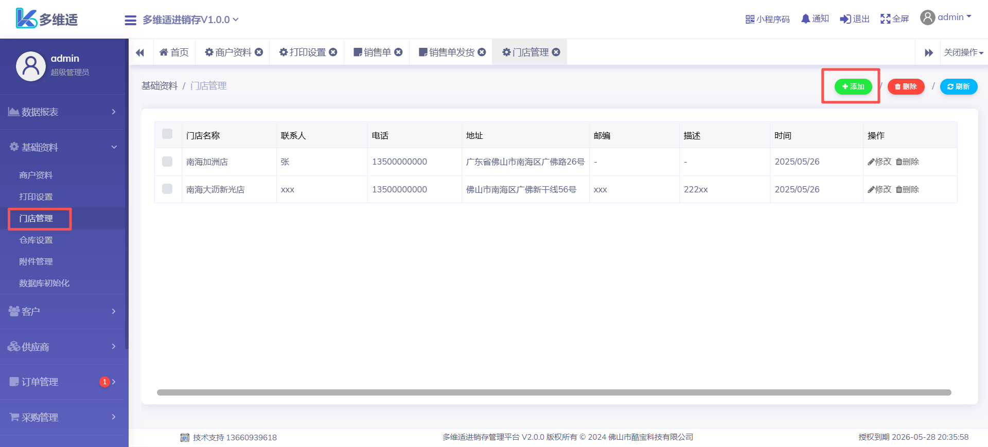 多门店功能,每个门店商品库存独立,营运数据独立,商品数据公共调用避免重复上传商品数据;可通过左上角的门店名称切换不同的门店查看数据。