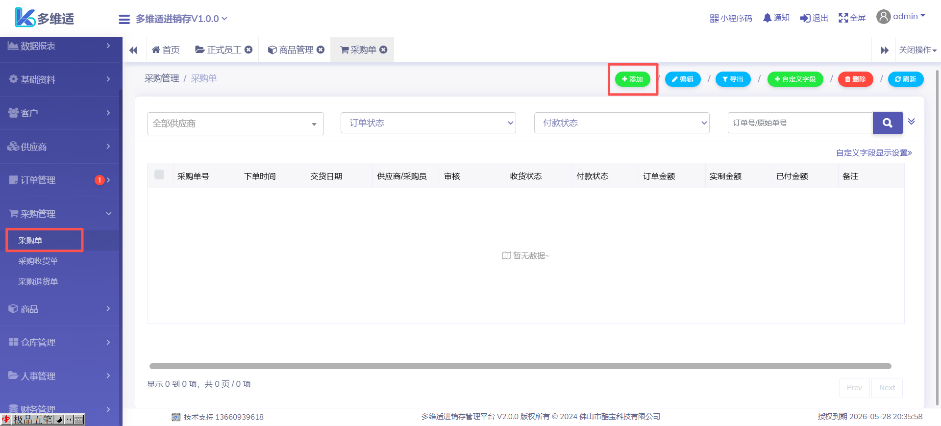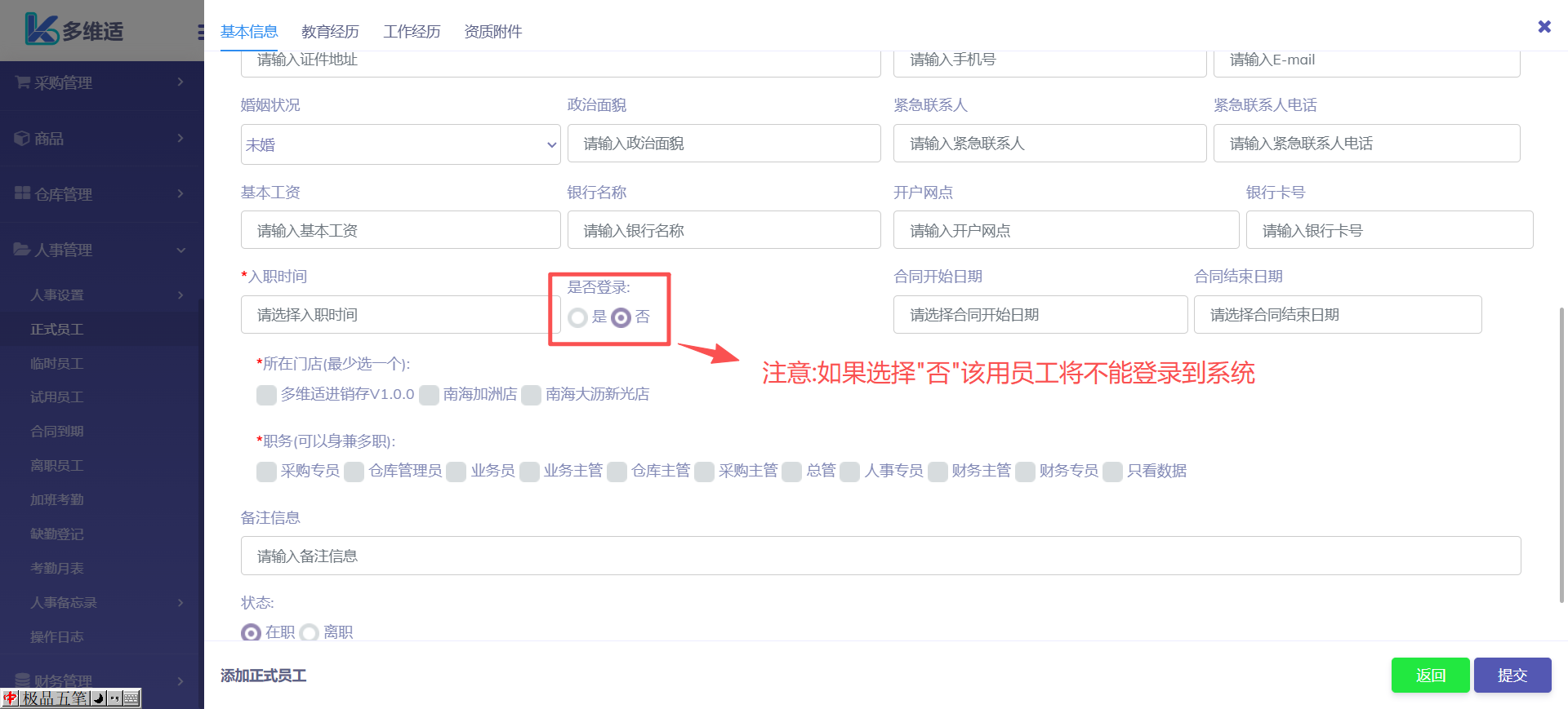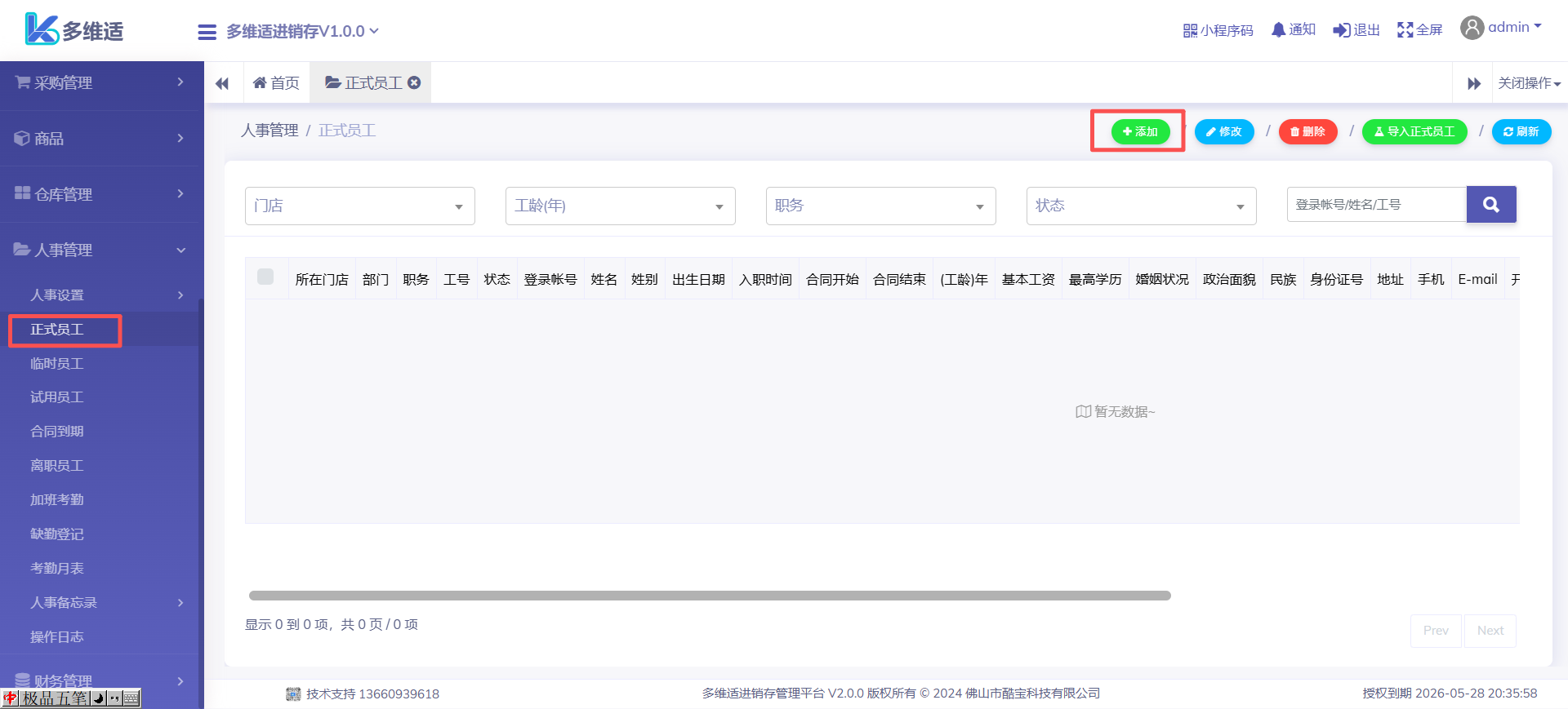 我们需要添加一个员工帐号来管理系统或作为业务员和采购员的一个默认用户,尽量不要使用admin用户来处理业务;因为admin是一个超级管理员,用来做业务不太合适。