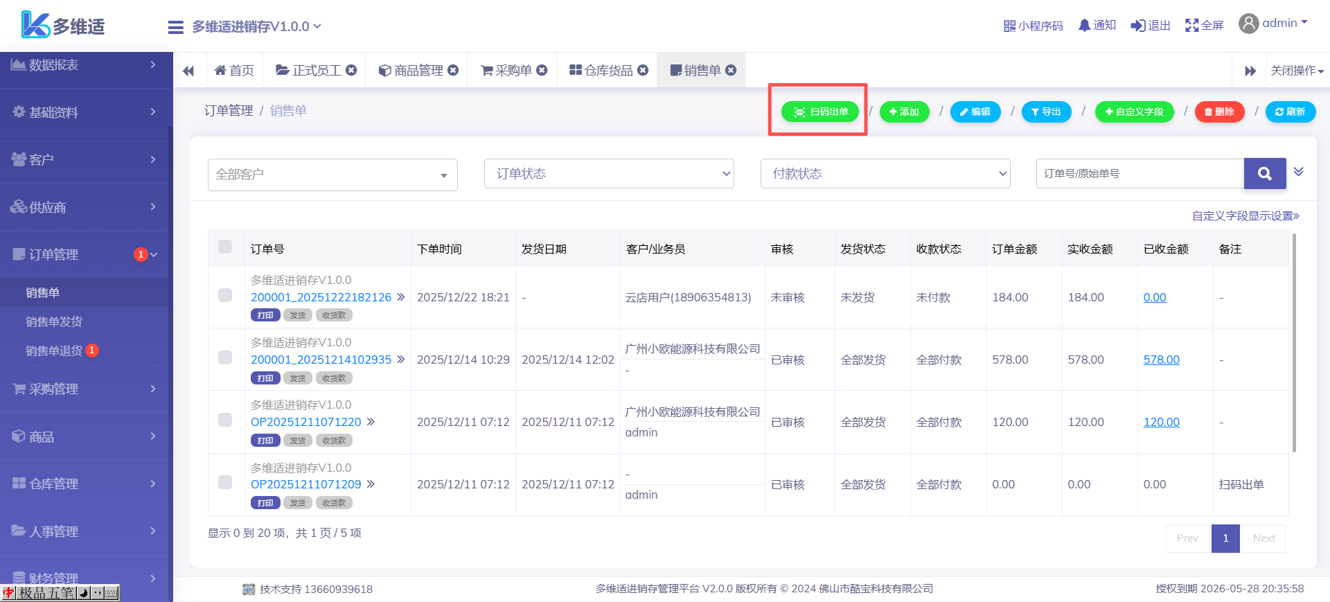6.3 通过仓库扫商品标签码出库(不需要记录帐款)
