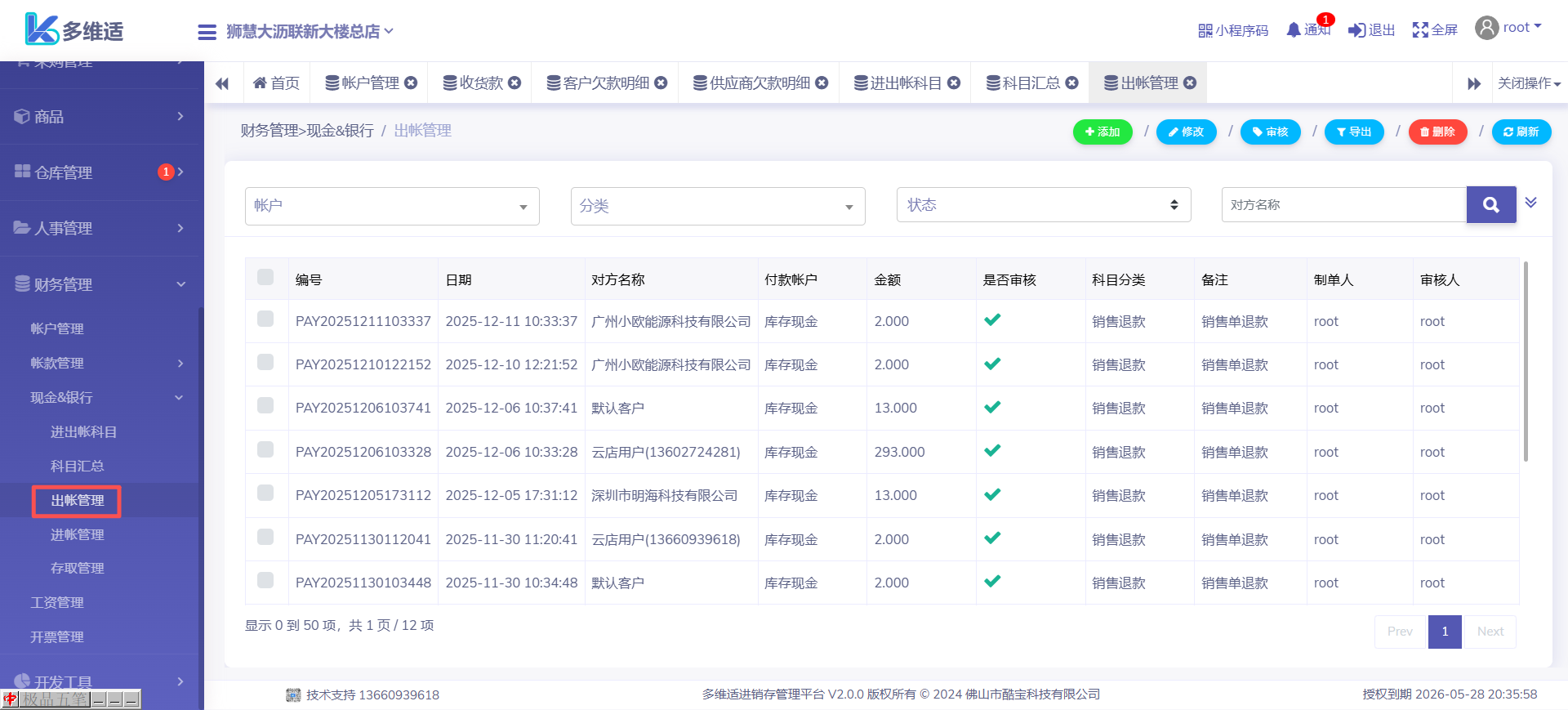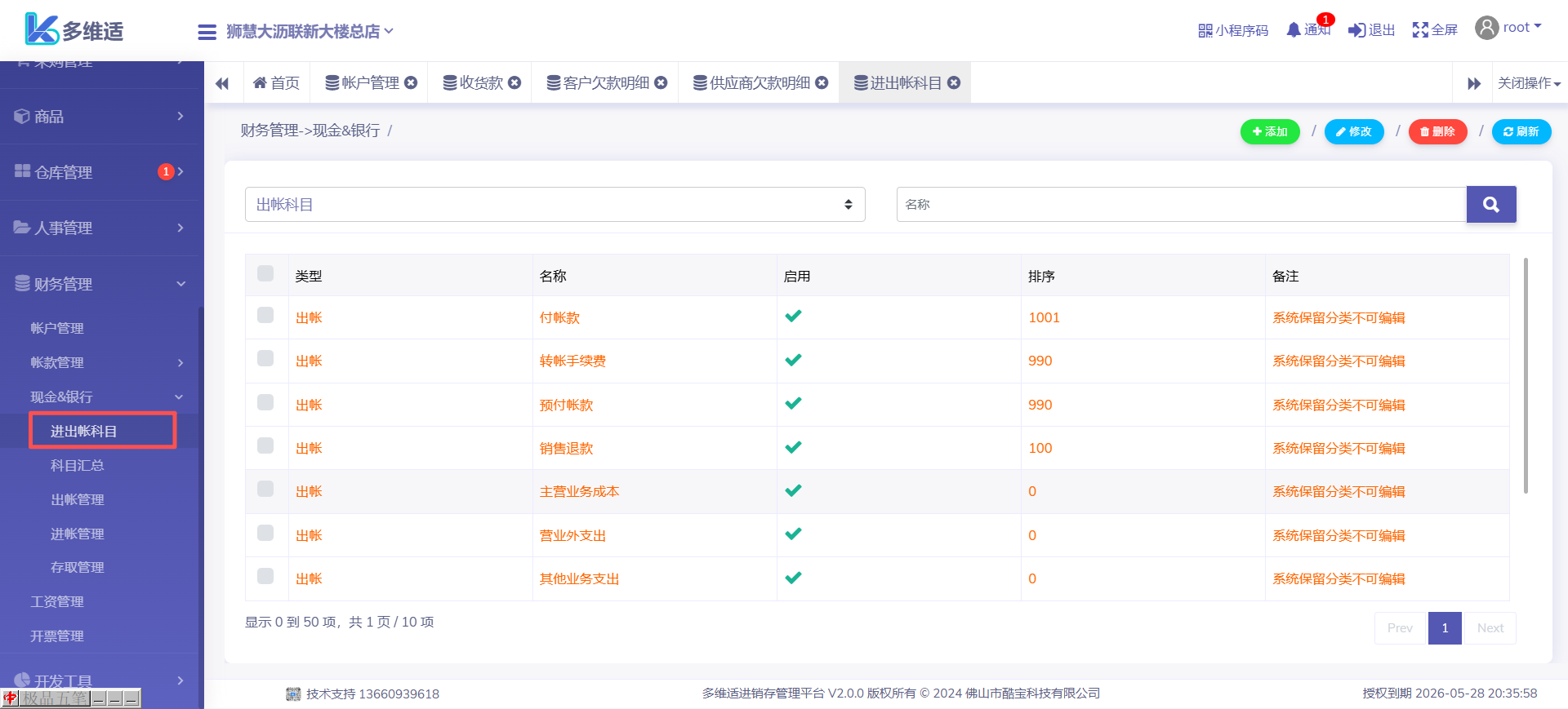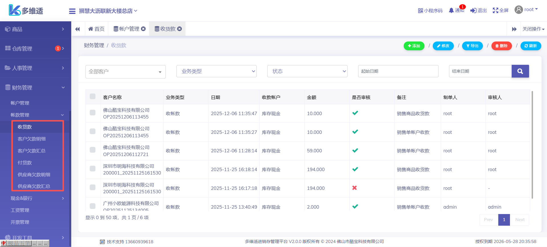 系统自动记录客户帐期,如果是现金交易即不会记录客户帐期,但会增加我们帐户的余额,具体细节会在财务模块显示。