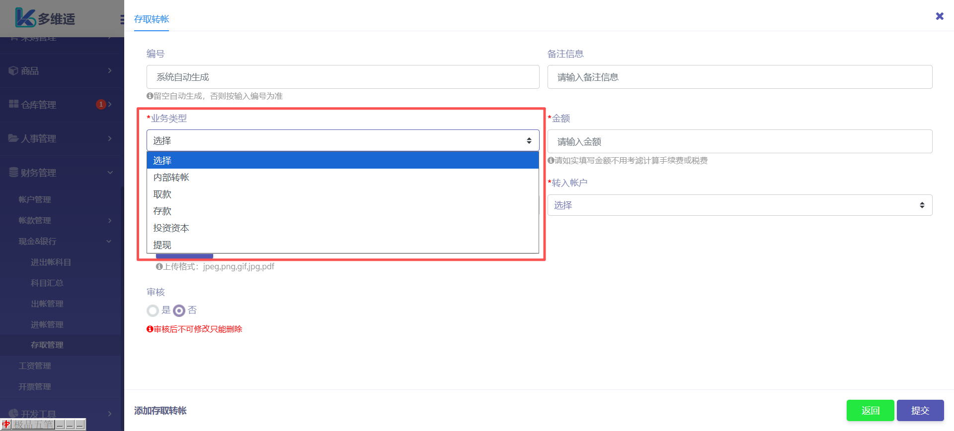 就是我们的营运帐户之间的转帐交易,也可用作投资资本和提现功能,可根据需求选择类别。
